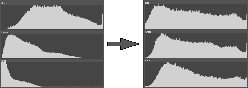 In selecting the aoi is important that there are no clip components (black or white), otherwise, the clip values would have matching/clipped RGB values and defeat the selection. Note that this method is not suitable for every scene, as it requires that there is some relevant near white and near black exposed areas.