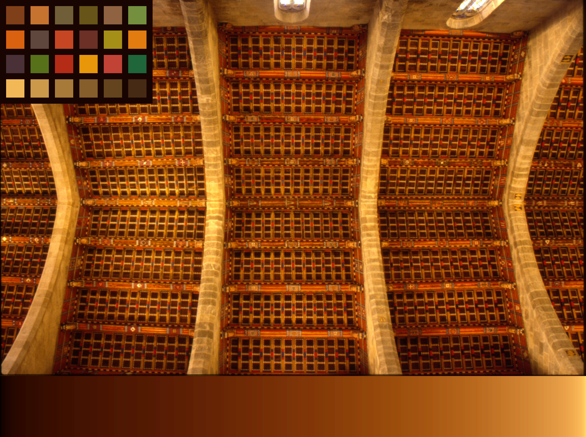 The image resulting from the color chart correction, in my opinion, is more natural (even without any taste correction). I think the results of the Epson Color Restoration algorithm for this particular image somewhat distort the color of -what I believe is- the wood trim around the colors of the ceiling.
