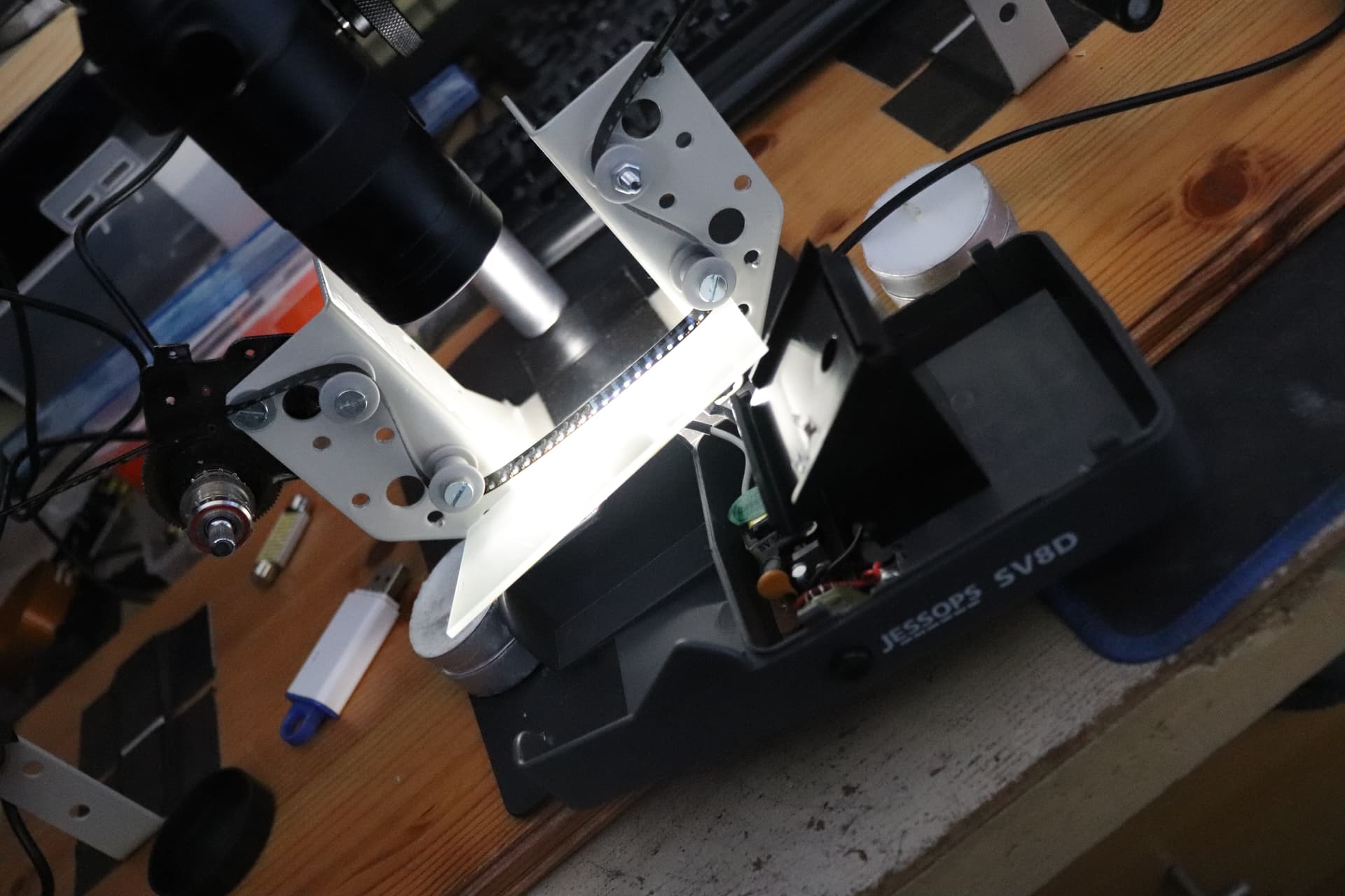Anyway. Once you have arrived at a nice grey image in the above setup, you should be good to go for an initial scan of your film stock. Insert a film, adjust the exposure for the film and see what you get.