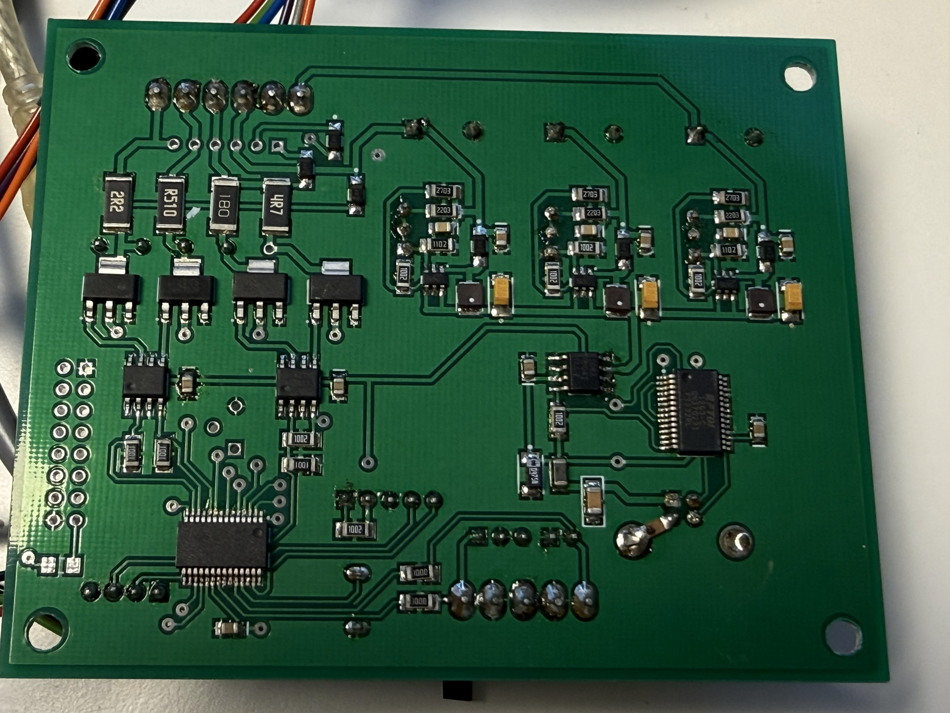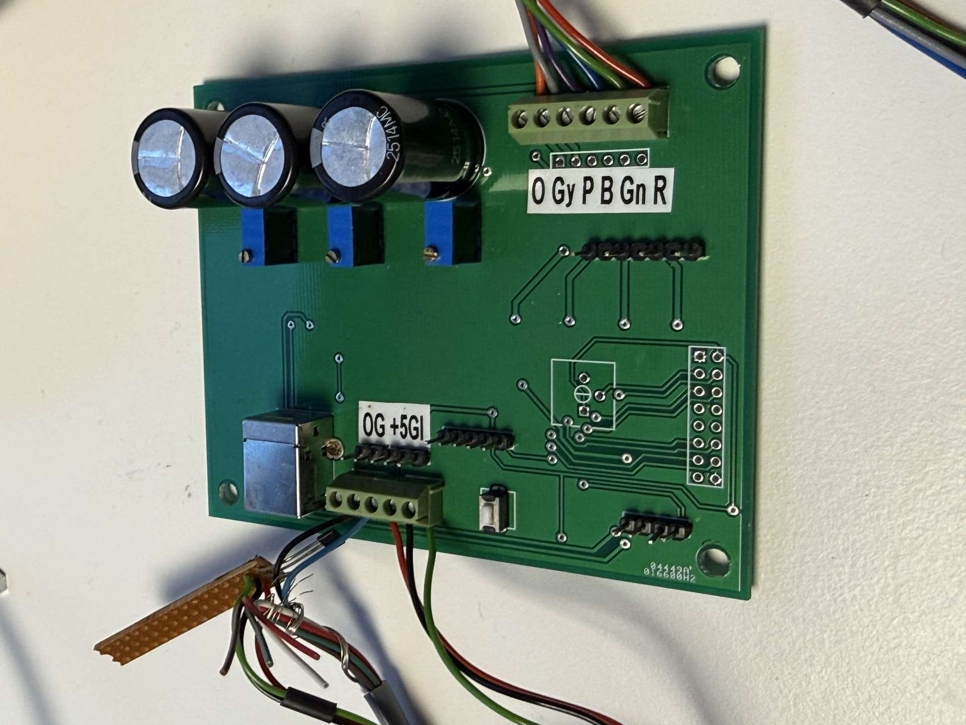 Originally, the LED system and the camera were triggered by a Hall sensor. There’s a manual for performing a laser compatibility upgrade on the existing board, but to prevent potential system damage, I decided to connect the incoming trigger signal to the fiber optic detector using an optocoupler or a control signal from the Teensy. Since the HS-CFLed board will control the LEDs and the camera trigger, I’ll be controlling the motor and possibly the input trigger of the fiber optic detector from the Teensy. In preparation, I’ve already taken a look at the Arduino/Teensy code posted here. Regarding triggering the system based on sprocket hole detection, I do have a question: For film formats up to and including 16mm, a trigger for each pulse from the fiber optic detector seems logical to me, given that each frame has one sprocket hole (the location doesn’t matter). For larger film formats, such as 35mm, multiple sprocket holes are present per frame. Is it true that the posted code doesn’t include a counter for the number of sprocket holes that must be passed before a trigger occurs? The film format selection and thus the number of sprocket holes to be passed for each trigger. Or did I misread the code? @Andriy_But: The HS-CFLed board can achieve what you’re trying to achieve: three exposure captures. I’m not sufficiently electronically skilled to backward engineer the board myself. Below are some photos of the board. They might be of interest to someone with an electronics background, or simply for inspiration.
