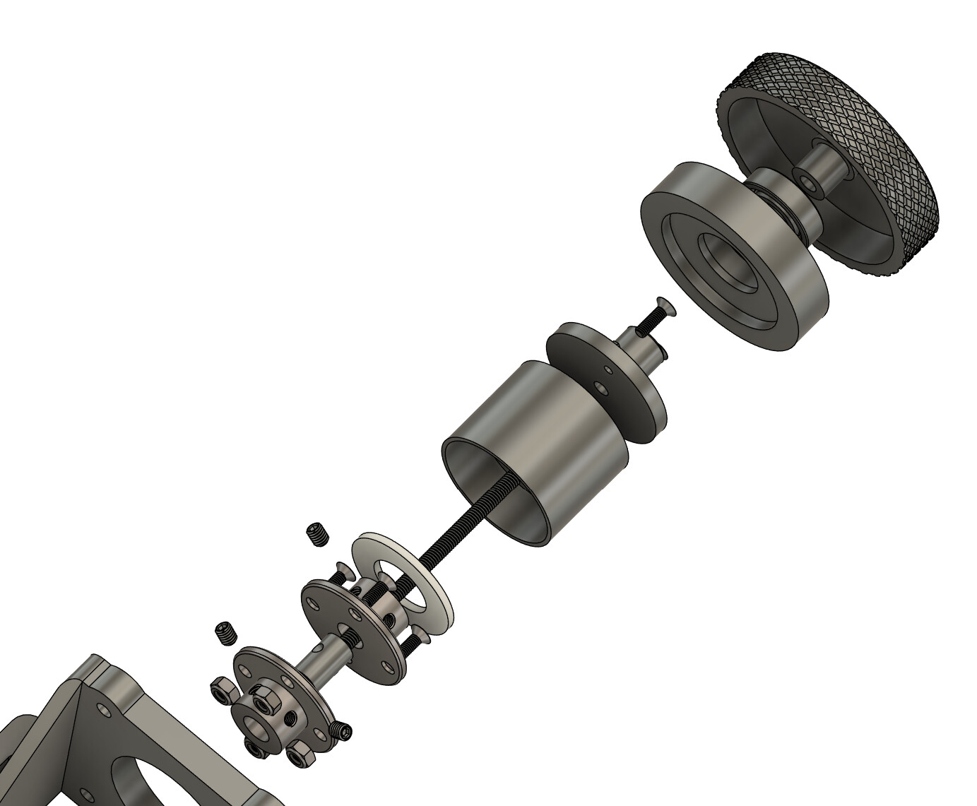 To prevent the tightening knob from unscrewing, I designed it in two parts, and the part that presses on the reel is not mechanically linked to the tightening knob. I’m attaching drawings that may illustrate my explanation more clearly.
