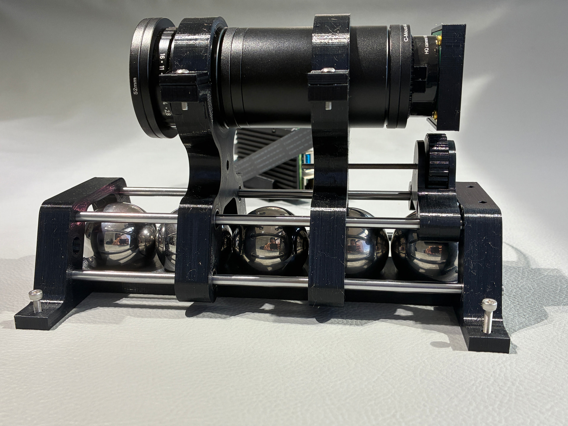 In testing at higher speed, I noticed that occasionally the film edge would appear to bind to the roller edge, particularly in the larger diameter (~28mm) rollers that I had printed. The issue appeared to be a combination of the angle into the film groove, and possibly the increased angle creating support/drooping issues on the print (I do not have the best 3D printer). Additionally, I noticed that the film dynamic was different, compared to the transport with all-smaller-diameter rollers. The amount of larger diameter rollers, and the increased weight had a noticeable effect. To narrow the gap between the capstan and the roller, I also wish to make the larger diameter (32 mm), leaving a very narrow gap, and potentially more weight. The reason for the larger rollers is to reduce sharp curves to protect the film from breaking.
