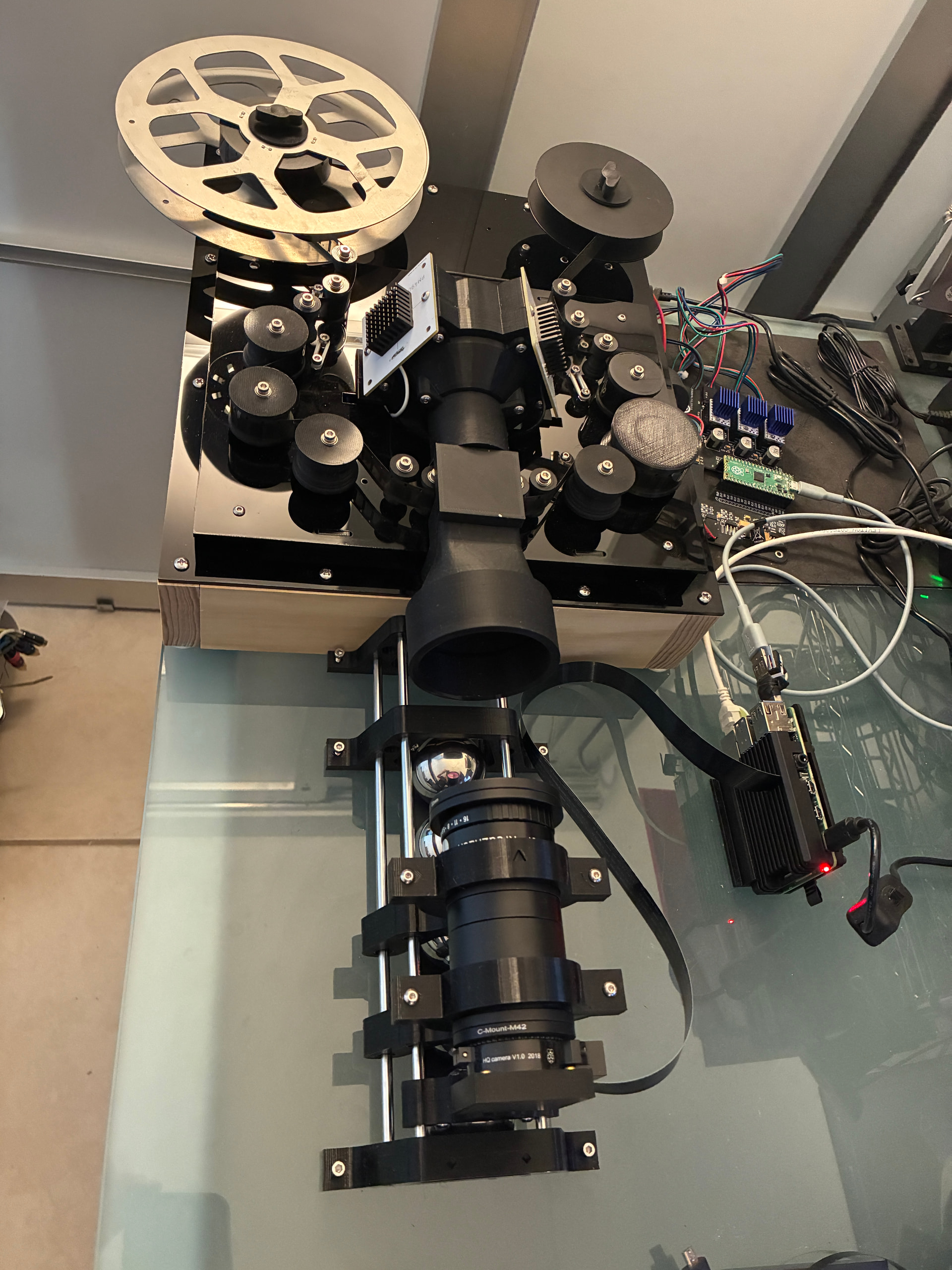 Picture of the new guide rollers (with 16mm film loaded).