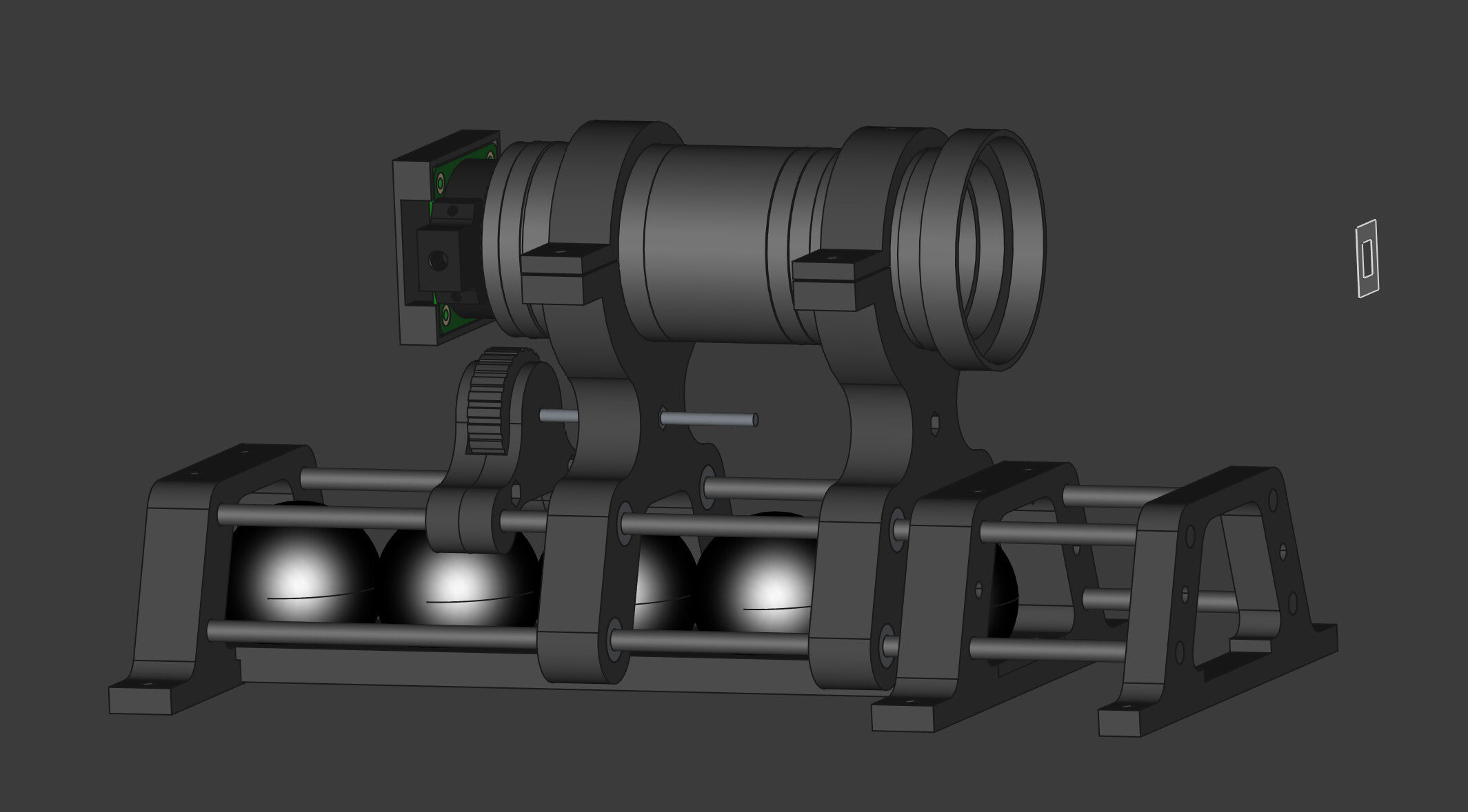 To address the above, it was time to redesign the rollers. This time the angles were constraint to 45 degrees on the film edges, and the inside of the large roller was hollowed. The V shape hole inside eliminates the issues with 3D printing support.